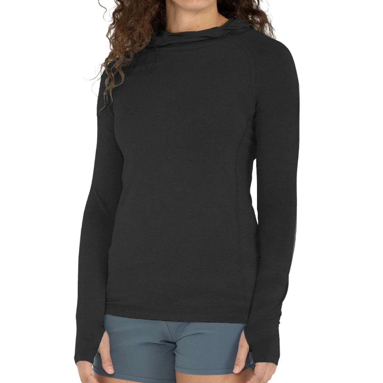 Enjoy longer summer days with the Free Fly women’s Bamboo Shade Hoody. This design offers performance features including an articulated hood with a crossover neckline and thumbholes to ensure total coverage from the sun’s harmful rays. And because it’s made from bamboo, you can rely on 50+ UPF sun protection while still feeling light, airy and unbelievably soft.
