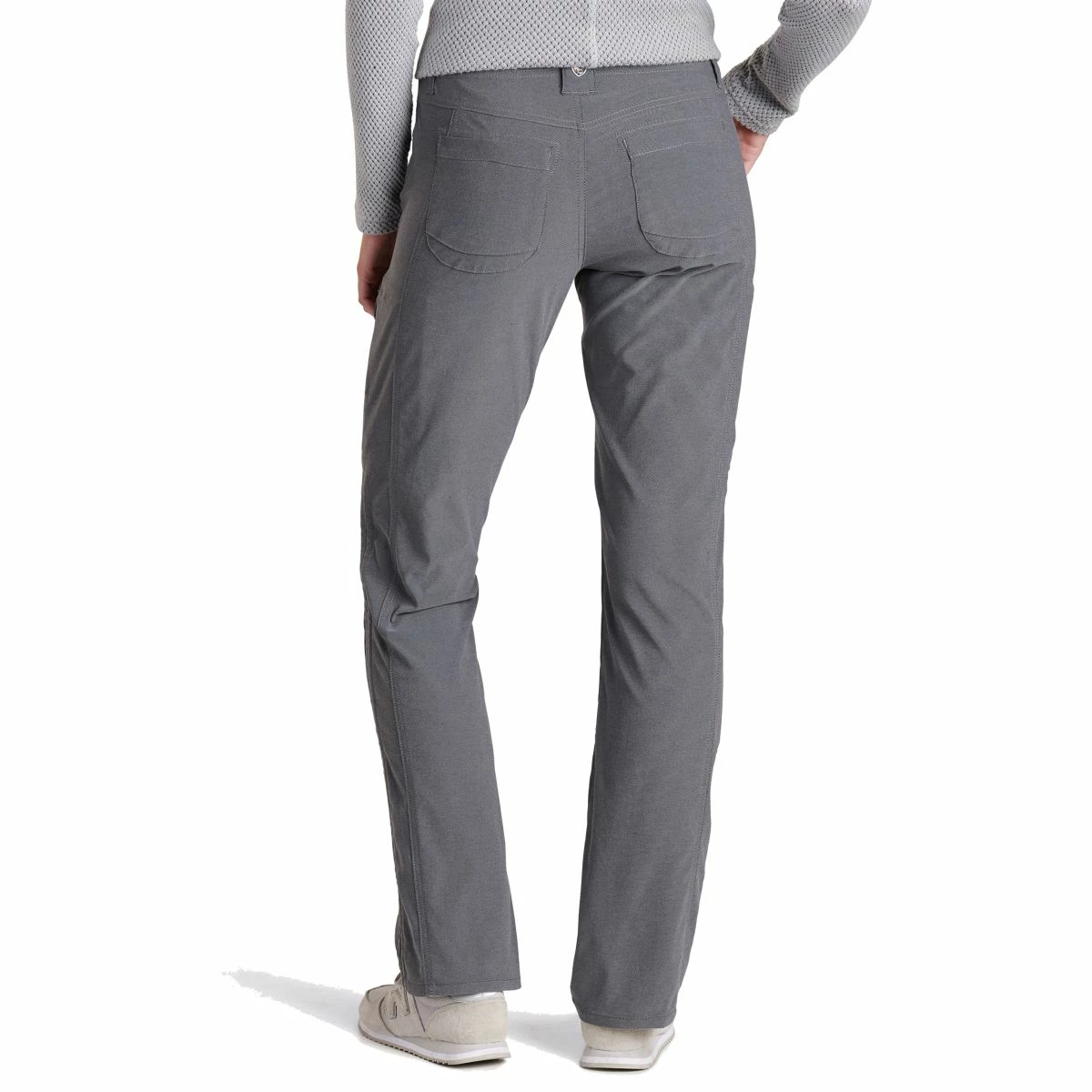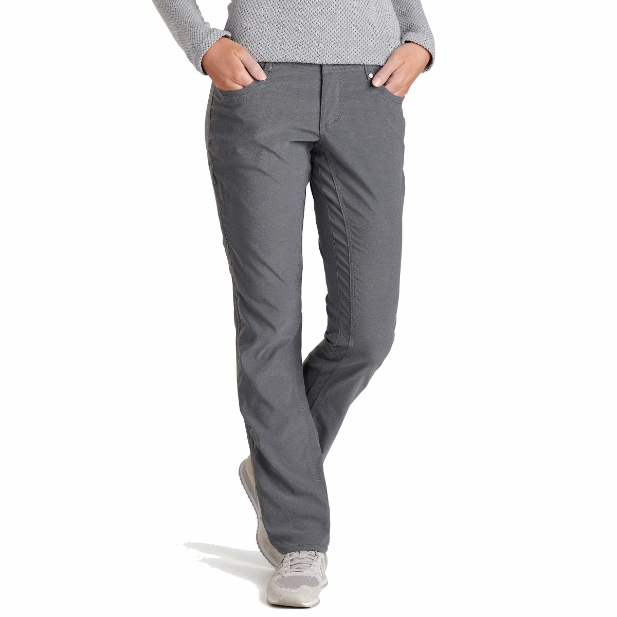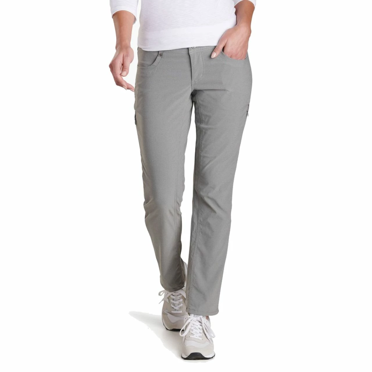 The Kuhl Trekr Pant features REKOIL™, a supple, luxurious fabric with a natural appearance and mechanical stretch. The brushed face, woven fabric is peached for a soft hand, while the built-in stretch allows freedom of movement. Featuring a straight fit and 15.5″ bottom leg opening that cinches up to make a capri-length pant. KÜHLKURVE™ fit makes the Trekr Pant extremely comfortable, while an internal waist drawcord provides a custom fit. Two snap closure back pockets and two hidden, zippered thigh pockets provide secure storage.