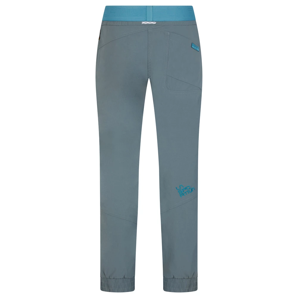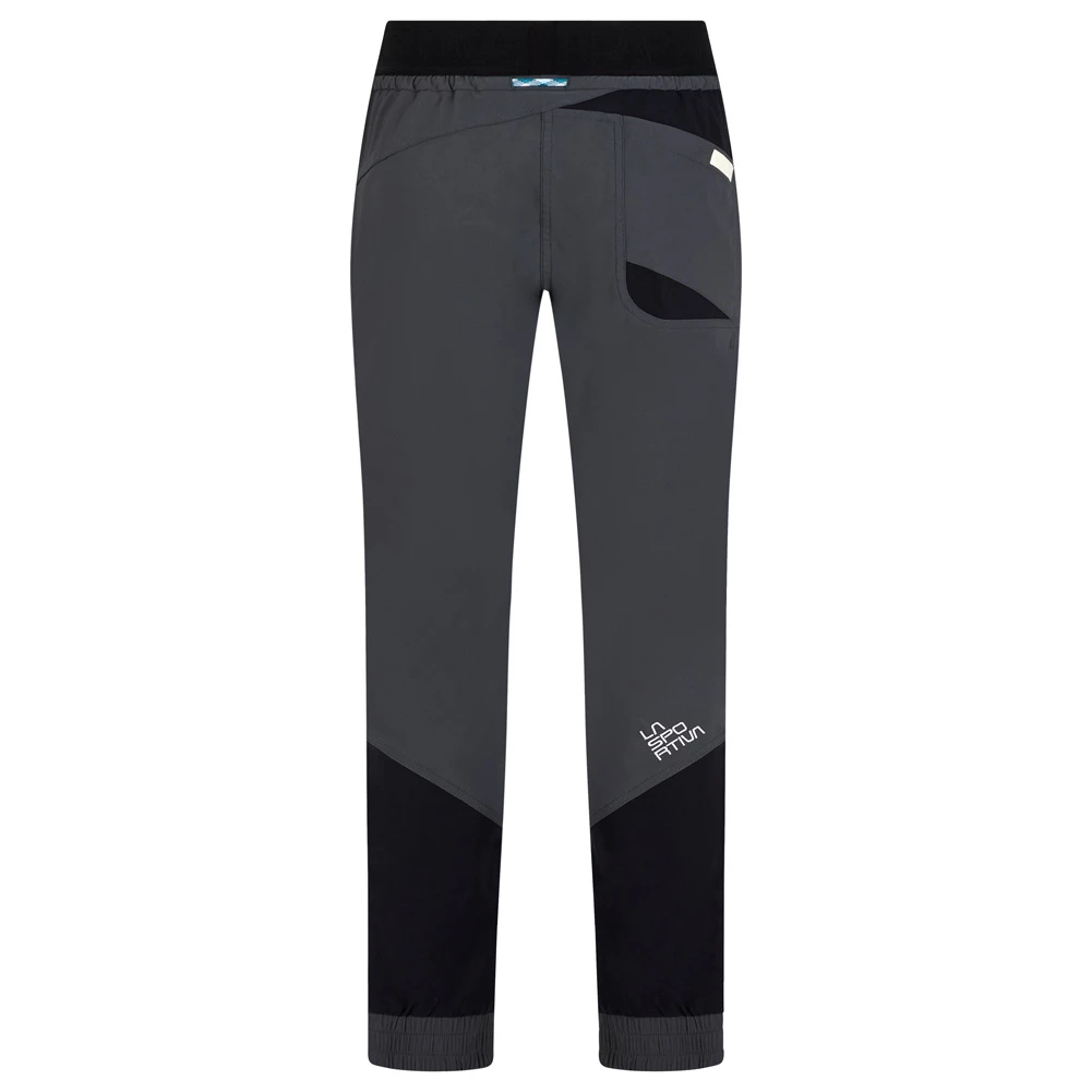 Our best-selling Mantra Pant is back with fresh updates. Made with a mix of recycled polyester and organic cotton, the Bluesign® approved fabric is stretchy and offers superior comfort. Articulated knees and a gusseted inseam provide room for free movement. A thick elastic waistband with an added drawstring keeps the Mantra Pant put throughout your climbing session.