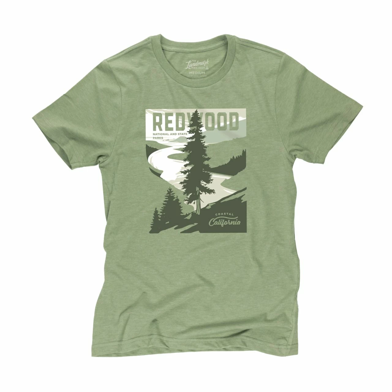 Redwoods National Park known for its namesake trees–some of the tallest on earth. While these centuries-old firs, located in Northern California have existed alongside settlers for thousands of years, the park also protects prairies, river ways, and over 40 miles of coastline…all of which should be explored in our trusty poly/cotton tee.