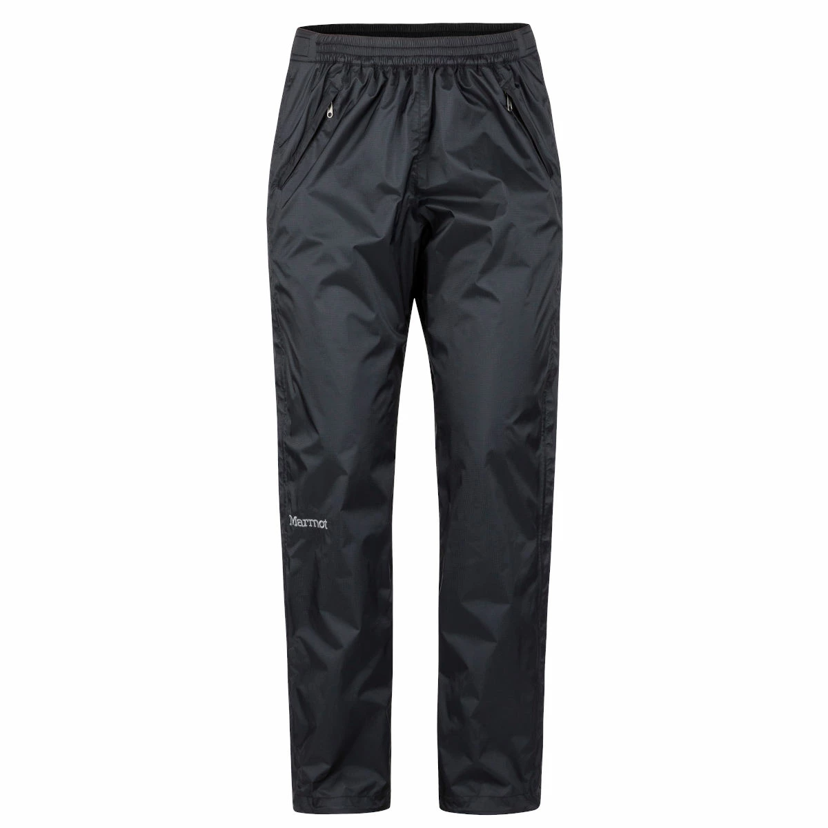 Women’s Full Zip PreCip Eco Pants in short length—because rain doesn’t stop at your shoulders when you’re hiking, climbing, or cycling. The waterproof/breathable PFC-free DWR Marmot NanoPro™ recycled nylon ripstop fabric will keep you dry. Full-length side zippers and an elastic waist make it easy to put these lightweight rain pants on and take them off on the fly without removing your shoes. Stash small items in the zippered side and back pockets.