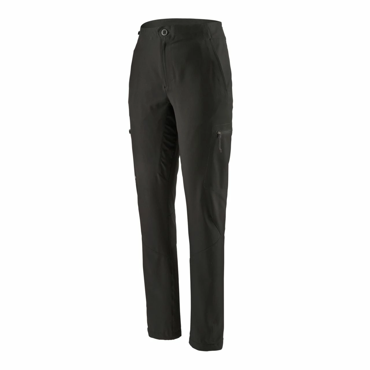 The lightweight polyester stretch-woven fabric of the Patagonia Simul Alpine Pants moves, breathes and resists weather, while the articulated pattern and gusseted crotch complement the technical cut. The separating zip-fly waist adjusts with a sleek, innovative OppoSet® adjustable waist closure (no more belt loops) for an on-the-go, customized fit. The two front and two thigh pockets (sized to accommodate a field notebook) all close with zippers. A slender lower leg lets you see your feet, and the cuffs tighten with a shock cord and cord lock. Tie-down loops allow you to attach an under-the-heel cord for use with ice boots.