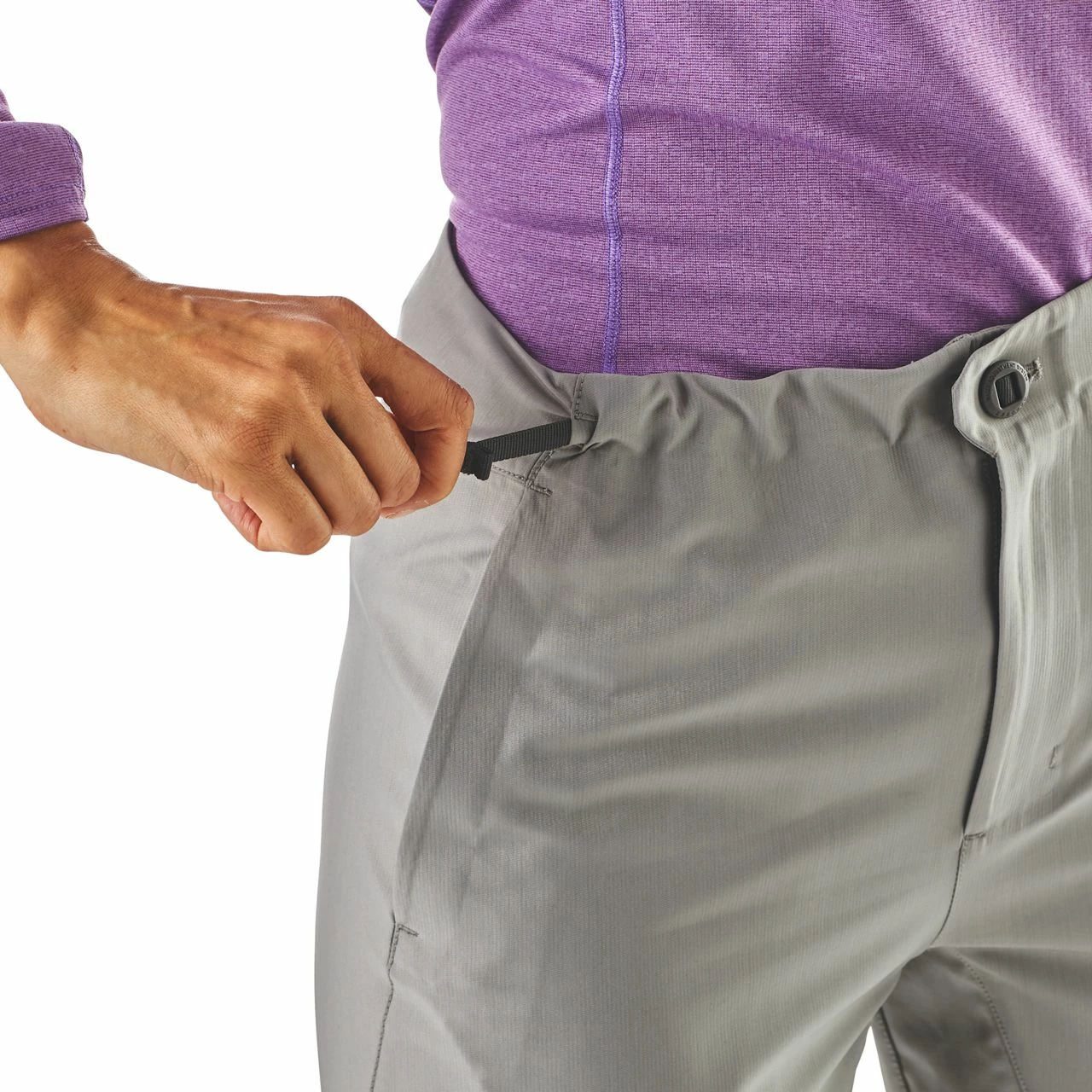 - Zip fly with OppoSet™ adjustable waist creates a low-bulk, customized fit by simply holding the button while pulling the webbing tail to tighten