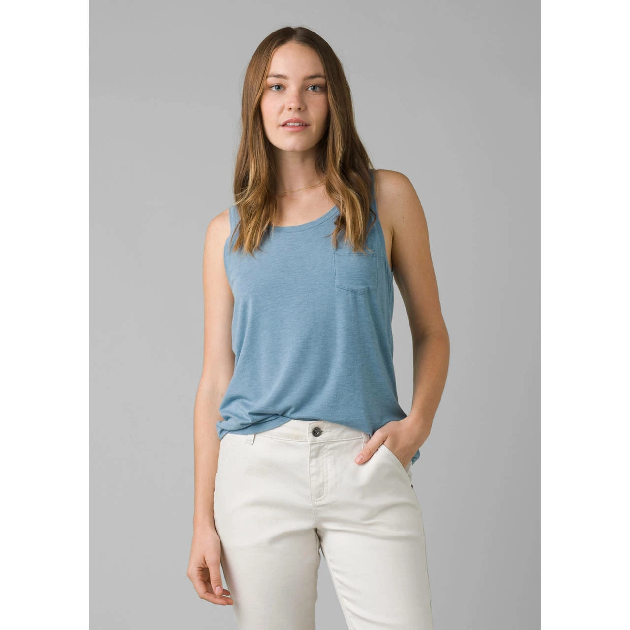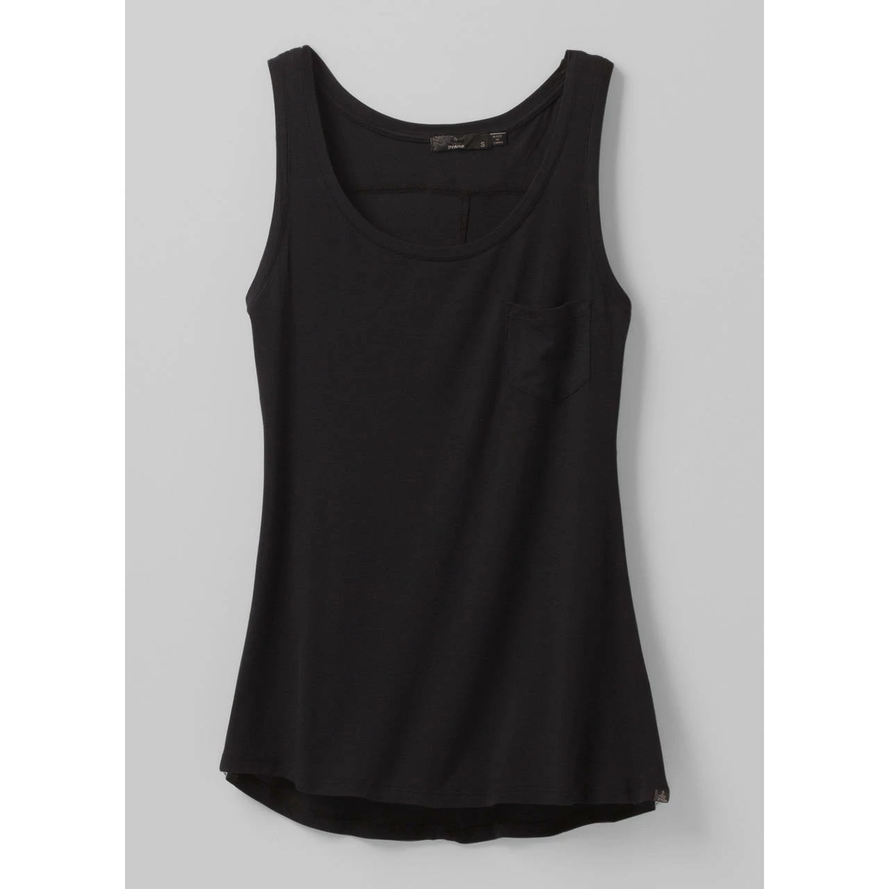 Sleeveless scoop neck pocket tank silhouette with back seam details